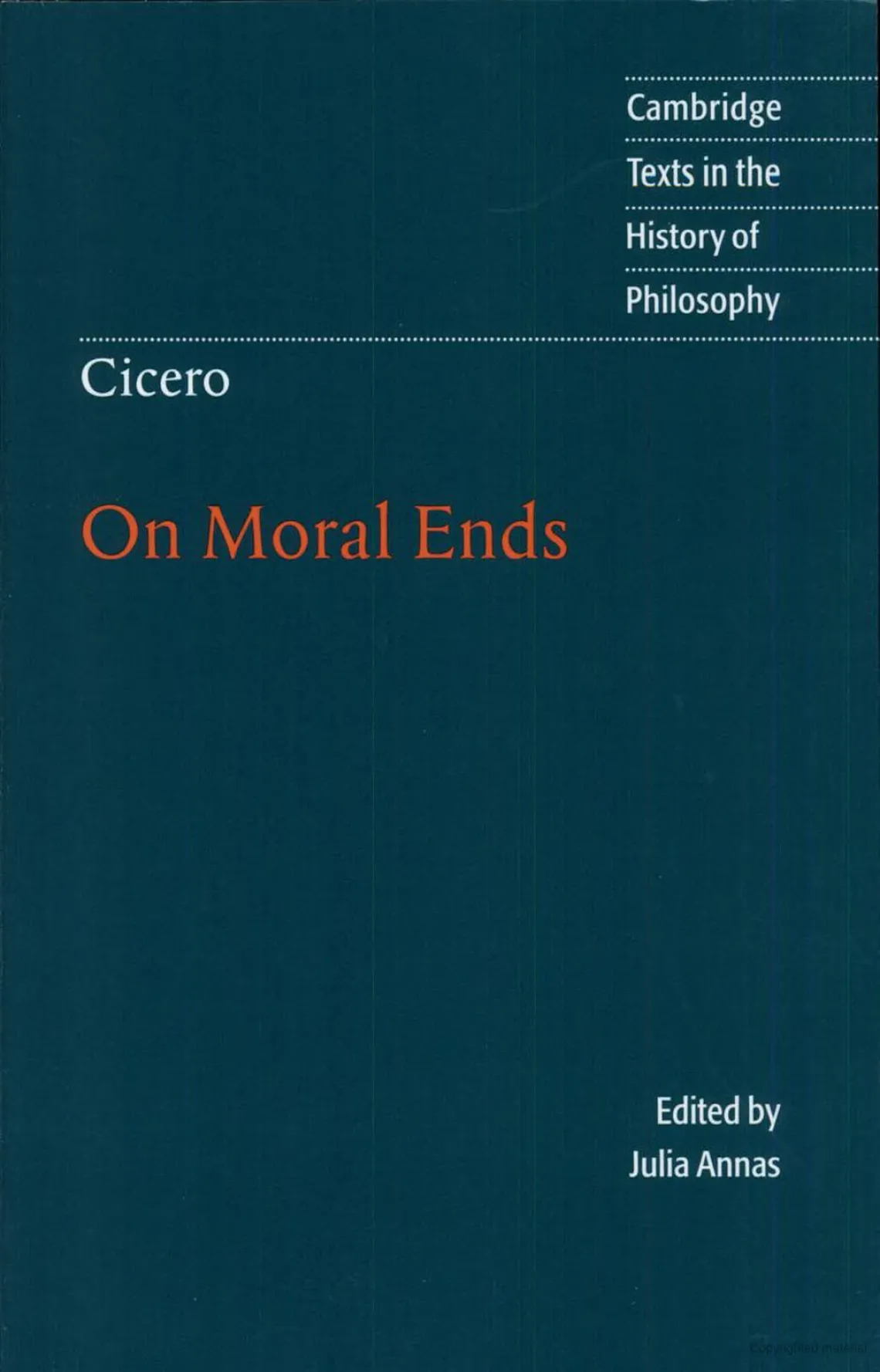 This 2001 translation makes one of the most important texts in ancient philosophy available to modern readers. Cicero is increasingly being appreciated as an intelligent and well-educated amateur philosopher, and in this work he presents the major ethical theories of his time in a way designed to get the reader philosophically engaged in the important debates. Raphael Woolf's translation does justice to Cicero's argumentative vigour as well as to the philosophical ideas involved, while Julia Annas's introduction and notes provide a clear and accessible explanation of the philosophical context of the work. This edition will appeal to all readers interested in this central text in ancient philosophy and the history of ethics.